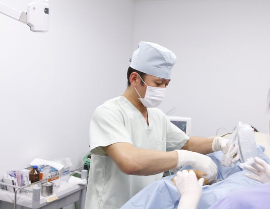 静脈麻酔とTLA麻酔(局所麻酔)をバランスよく組み合わせることにより、手術時の痛みを感じにくく、メスを入れないので傷口は針穴程度に抑えられます。治療後は当日歩行・入浴が可能で、初診当日の手術(要予約)にも対応。日帰り治療のため、遠方からの受診も多く、患者満足度は非常に高い評価を得ています。