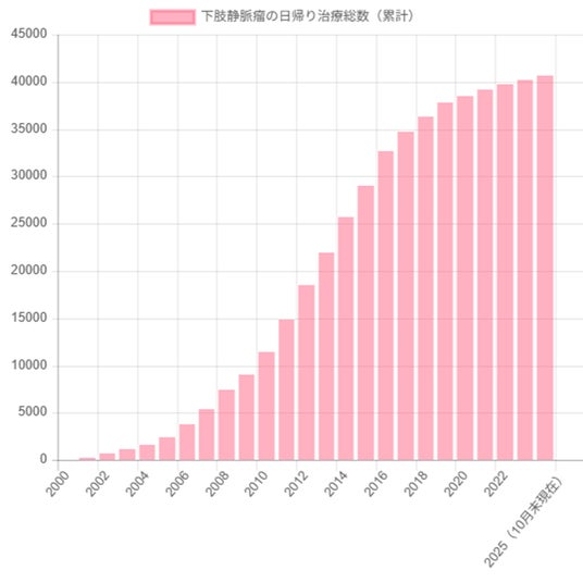 北青山D.CLINICにおける下肢静脈瘤 日帰り治療総数(2000~2025年10月末現在)