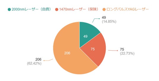 北青山D.CLINICにおける下肢静脈瘤 保険・自費レーザー治療一部内訳(2024年実績)