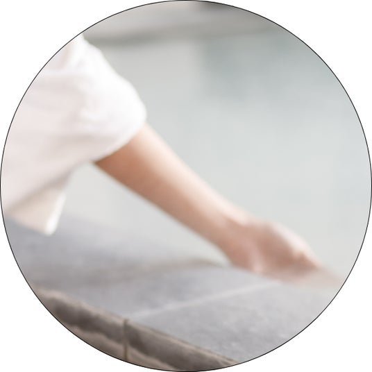 ハーブの蒸気に包まれたテントと富士溶岩プレートの穏やかな温熱が、呼吸を深めながら身体の深部から緊張をやわらげます。温めと発汗によって巡りが促されたあと、五行に基づいたボディトリートメントが、内側から活力を引き出します。