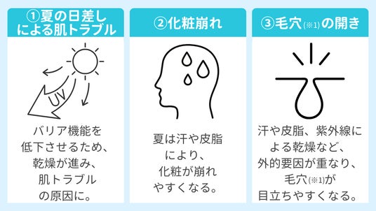 夏は汗や皮脂など外的要因が重なり、毛穴(※1)が目立ちやすくなります。