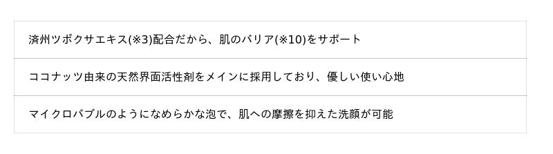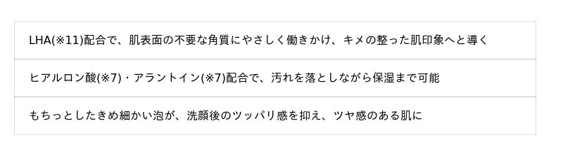 空気を含んだような優しい泡が、肌の汚れや皮脂を洗い流してくれます。