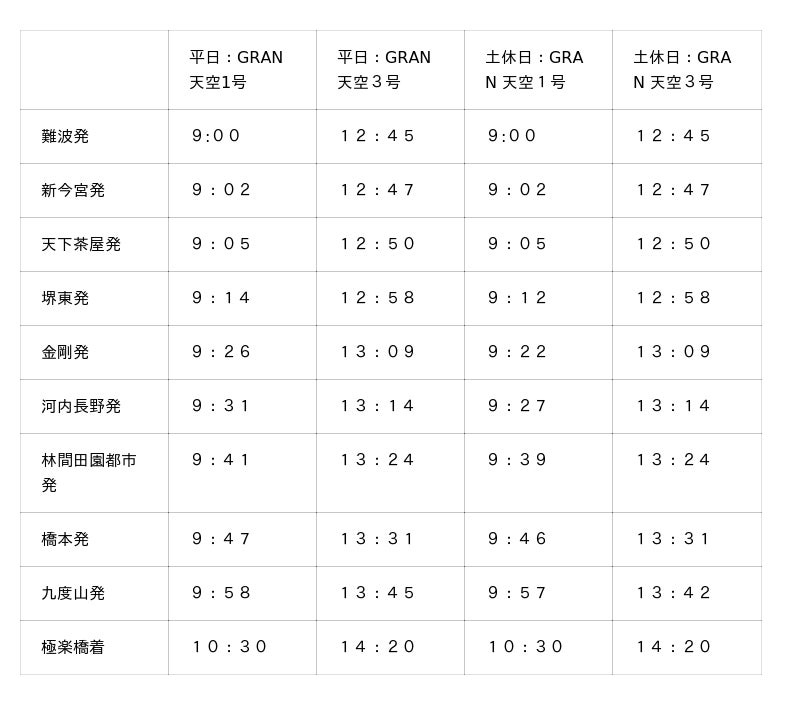 南海電気鉄道株式会社(社長:岡嶋 信行、以下「南海電鉄」)は、2026年4月24日(金)※に運行を開始する「GRAN 天空(グラン テンクウ)」の1・2号車の特急券および4号車の各種プランを、4月1日(水)10時から発売します。また、各駅の発着時刻および料金の詳細が決定しました。