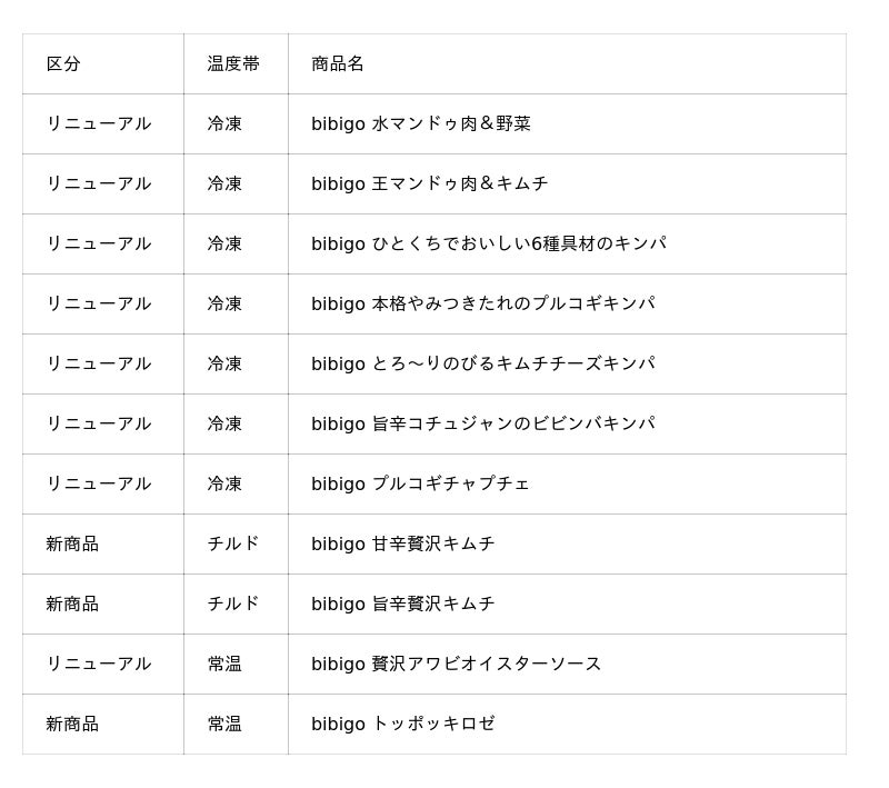 「bibigo」26年家庭用春夏新商品・リニューアル品