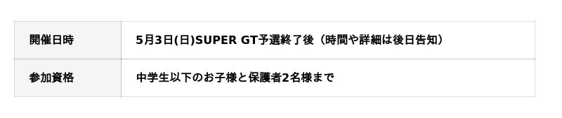 お子様と保護者同伴で、SUPER GTドライバーやチーム監督に会える特別イベント。