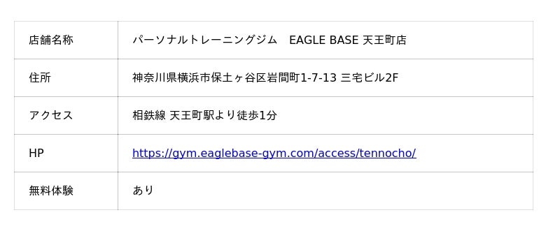 2026年3月5日に天王町駅(神奈川県横浜市保土ヶ谷区岩間町1-7-13 三宅ビル2F)にマシンピラティスも導入したパーソナルジム『EAGLE BASE 天王町店』をオープンする。