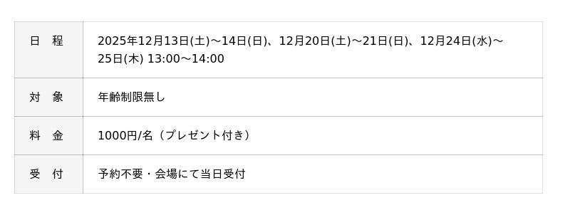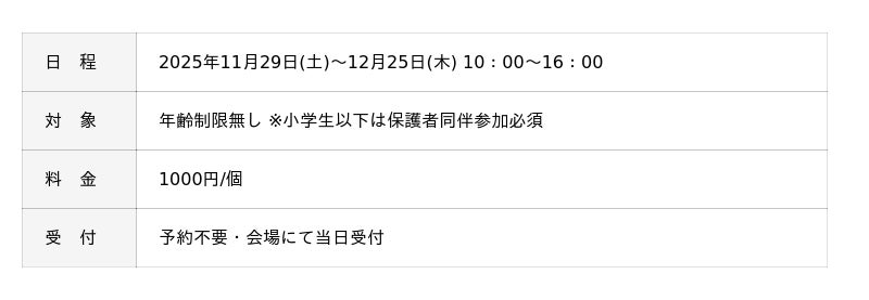 ■アドベントシーズンの見どころ2.「クリスマスワークショップ」