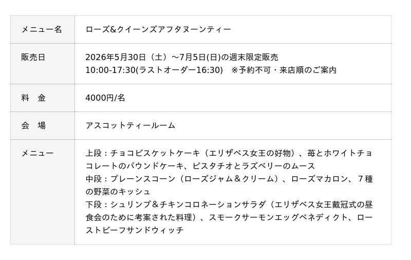 エリザベス2世女王陛下生誕100周年記念「ローズ&クイーンズアフタヌーンティー」