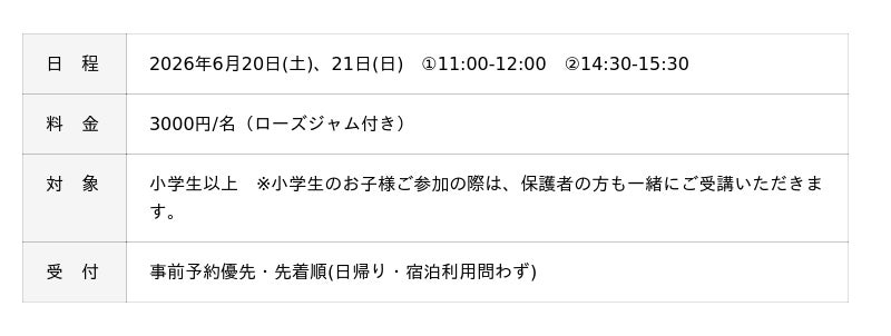 人気のレッスンの「スコーン作り」がイベント特別仕様で登場。今回は「アールグレイ味・ローズジャム付き」で開催いたします。ブリティッシュヒルズの外国人教員が英語で開講。食べきれない分はお土産にお持ち帰りください。