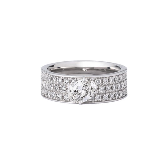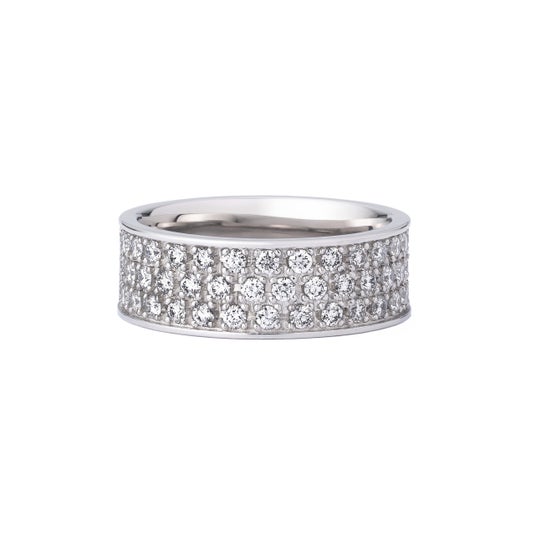 磨き上げられたメタルに留められたダイヤモンドは、整然とした佇まいの中に確かな光を放ち、シンプルでありながら繊細さと力強さを併せ持つ洗練の存在感を纏います。