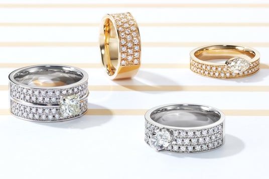 ソリテールリングには、プリンセスカットやマーキスカット、イエローダイヤモンドなど、多様なダイヤモンドを採用しました。
