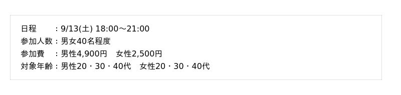「婚活」というよりも、“友達や恋人探しのきっかけづくり”として気軽に参加できる点が特徴です。自由でリラックスした雰囲気で、初めての方でも安心して参加できます。
