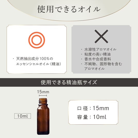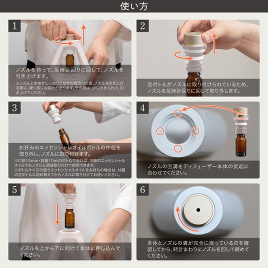 お好みの10mlエッセンシャルオイルを装着するだけで準備完了。