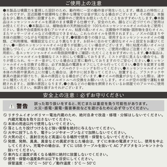 エッセンシャルオイルを空気の力で霧化し、純粋な香り成分だけを拡散します。