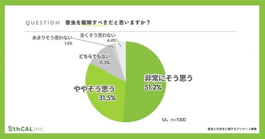 特に「非常にそう思う」が過半数の51.2%に達しており、多くの生活者にとって害虫は“見つけたら排除すべきもの“として刷り込まれていることがうかがえます。