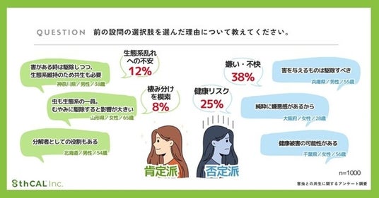 その結果、多くの人が害虫に対して「不快・怖い」と感じる一方で、必ずしも一方的な駆除を望んでいるわけではないことが明らかになりました。