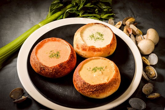 毎日店内で焼き上げる香ばしいブレッド。そこにたっぷり注がれるのは、水を一滴も使わず素材の旨みだけで炊き上げた特製クラムチャウダー。3種類の個性豊かな味わいを、ブレッド容器のままお楽しみください。
