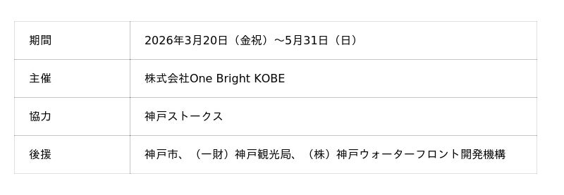 株式会社One Bright KOBE(住所:神戸市中央区、代表取締役社長 渋谷 順)は、2026年3月20日(金・祝)より開業1周年記念イベント「TOTTEI KOBE 開港祭」と没入感のある水辺のイルミネーション「KOBE BUBBLUMI 2026(神戸バブルミ)」の開催を記念して、TOTTEI 公式アプリを活用したTOTTEIエリアと神戸市内のバーを巡る回遊イベント『ストークスGREEN & KOBE BARスタンプラリー』を開催いたします。