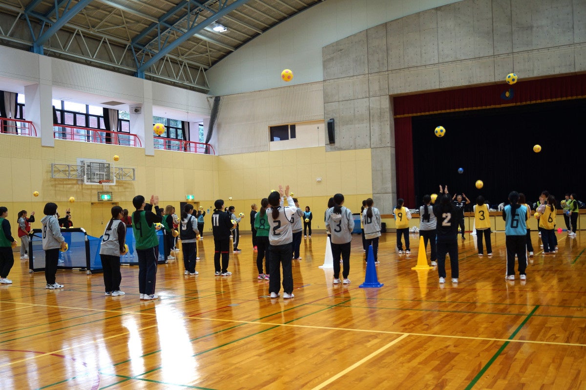 島根県立大学松江キャンパスでは、学生を対象として、子どもの発育発達の特徴やその特徴を生かしたキッズ年代への関わり方の習得、また子どもたちが体を動かし思う存分に楽しむことができるようにサポートできる指導者・保護者・保育士・幼稚園教諭・小学校教諭等の育成のため、日本サッカー協会公認キッズリーダー講習会を開催しています。