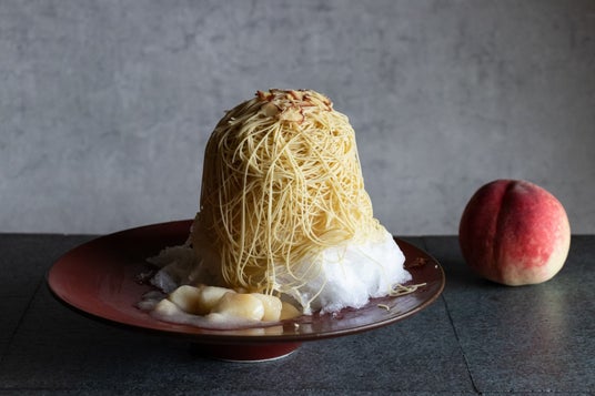 『モンブラン桃氷』は、和栗の濃厚な風味とみずみずしい桃の甘さが口の中で絶妙に調和し、暑い季節にぴったりの一品となっております。