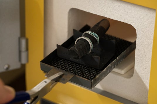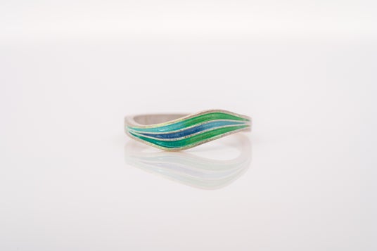 専用の炉で高温焼成することで、ガラス質の美しい色合いが指輪に定着します。