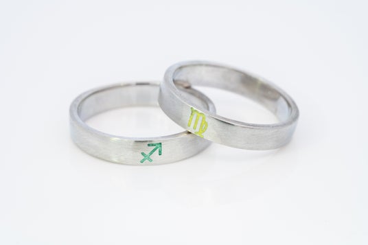 また、通常のAIGISの手作りペアリングに、好きな文字や記号を刻み込み、そこにエマーユの釉薬を色付けしていくことで独自の文字やイラストを入れる事も可能です。