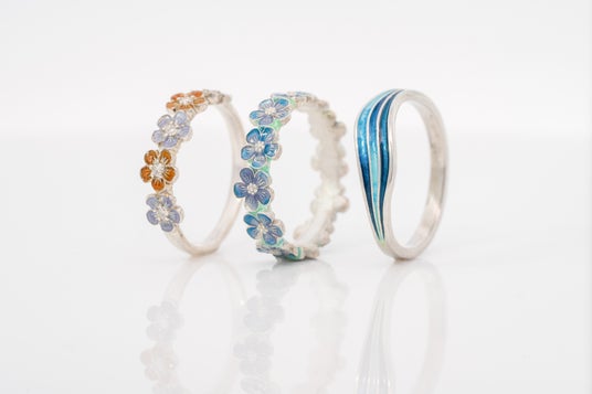 エマーユリング(七宝リング)の手作り体験サービスは、数種類のデザインのシルバーリングを選択し、好きな色(釉薬)を指輪に乗せていき、最後に専用の炉で高温焼成することで、お客様の選んだ独自のカラーリングの指輪・ペアリングを作ることができます。