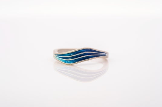 波や花をモチーフにした既成のデザインのシルバーリングを選択し、そこにお好みのカラーを入れていく、という制作パターンです。