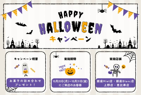 2025年10月20日(月)から10月31日(金)まで、ご来店いただいたお客様全員にハロウィン仕様のお菓子をプレゼントするキャンペーンを実施します。
