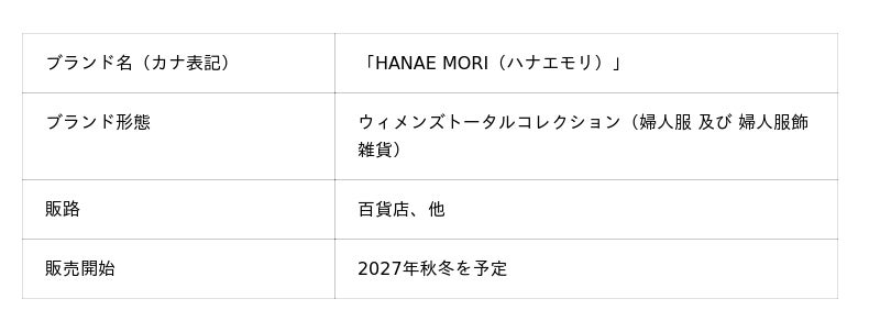 株式会社三陽商会(本社:東京都新宿区、代表取締役社長:大江伸治)は、中期経営計画(2026年2月期~2028年2月期)における新たな成長戦略の一環として、MNインターファッション株式会社(本社:東京都港区、代表取締役社長:吉本一心)とのパートナーシップのもと、ウィメンズのトータルコレクションブランド「HANAE MORI(ハナエモリ)」の企画・製造・販売を2027年秋冬シーズンより開始することを決定しました。