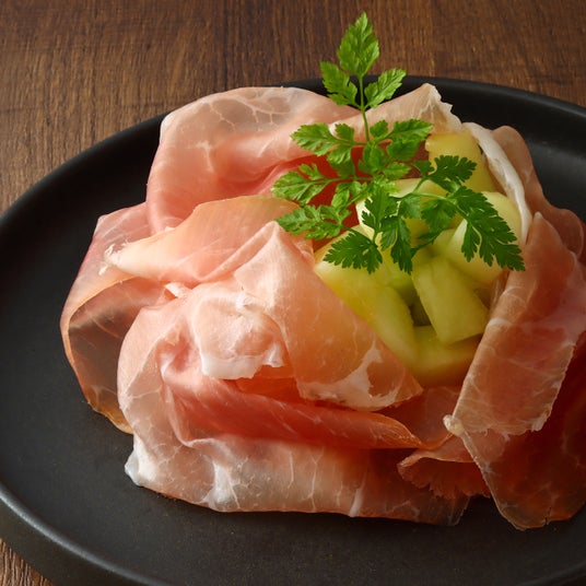 イタリア産の生ハムが輸入禁止!それなのでスロヴェニアの旨味のある生ハム14ヶ月熟成の生ハムをセレクト!クラシックにメロンと合わせて華やかに仕立てます