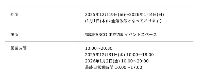 期間:2025年12月19日(金)~2026年1月4日(日)