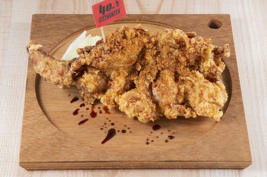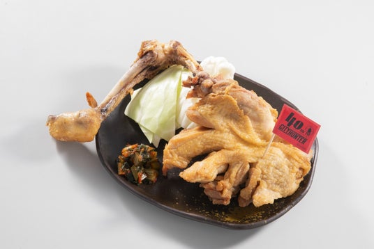 鳥メロ名物骨付き清流若どりを豪快に揚げました!振り回し厳禁!?