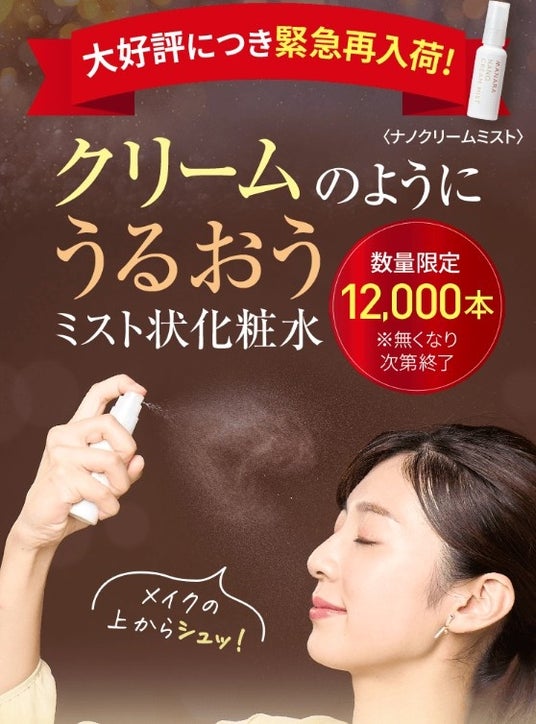大人気マナラ〈ホットクレンジングゲル〉をはじめとした、オリジナル化粧品ブランド「マナラ」 「アールオム」「アクナル」を開発・販売する株式会社ランクアップ(本社・銀座、代表・岩崎裕美子)は、マナラ<ナノクリームミスト>を、2025年9月1日より数量限定12,000本で、再販開始致しました。