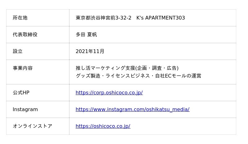 弊社は”推し活”女子をターゲットに、オタク領域でオンラインストア・メディア運営を実施しております。また、企業様向けにオタク企画プロデュースやコンサルティングを行っております。