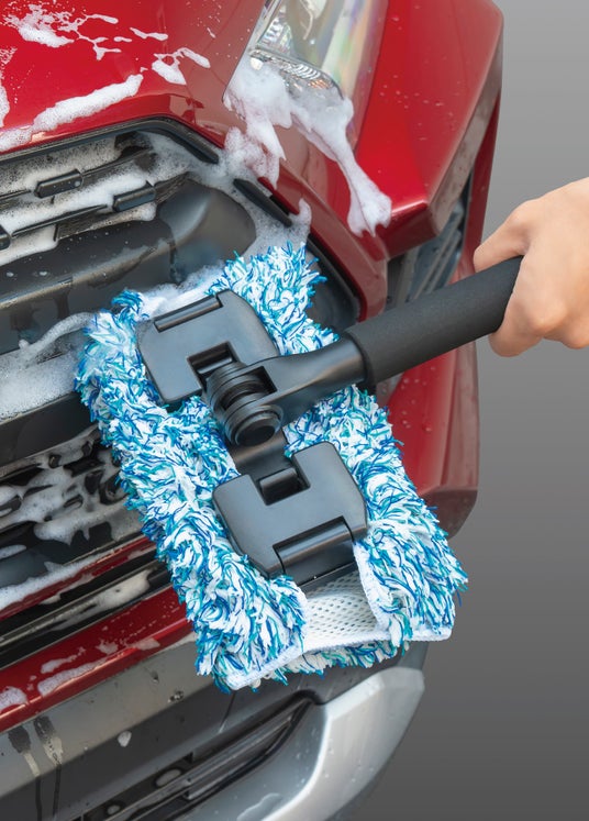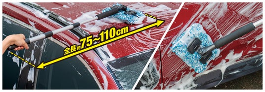 取り回しの良い3段伸縮ハンドルを採用。ルーフや足元に合わせた長さに調整可能で、収納もコンパクト!ヘッドを洗いやすい角度に固定できしっかり力が伝わります。