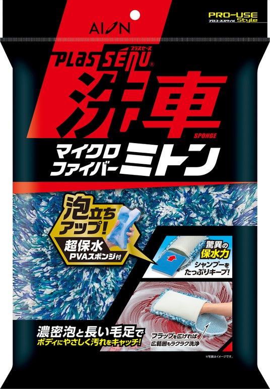 吸水性に優れたポリビニルアルコール(以下PVA)製の吸水スポンジクロス「プラスセーヌ」を中心にカーケア用品を展開するアイオン株式会社(代表取締役社長:中村勝)は2026年3月より、洗車時の摩擦による微細なキズを抑える「プラスセーヌ洗車スポンジ マイクロファイバーモップ」と「プラスセーヌ洗車スポンジ マイクロファイバーミトン」を全国のカー用品店等で発売します。