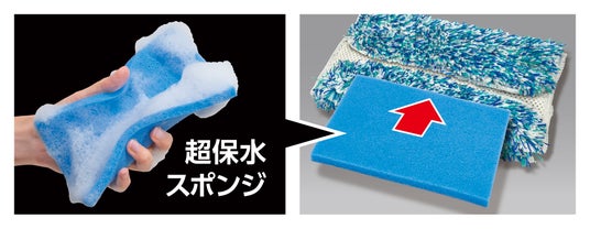 独自開発のPVA製「超保水スポンジ」とマイクロファイバーの組み合わせで泡立ち性能を大幅強化!