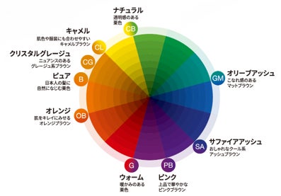 ※本カラーガイドは目安ですので、実際の染め上がりの色とは異なります。