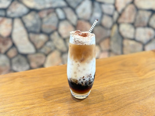 ほろ苦いコーヒーゼリーにマロンシロップとミルクを合わせたドリンク。