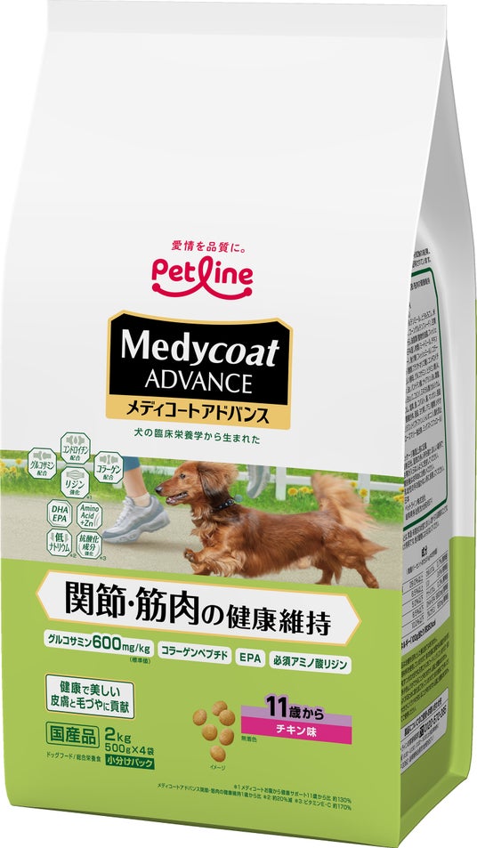 ■メディコートアドバンスから犬の関節・筋肉の健康維持に配慮した新商品が登場。若齢からシニア犬の関節・筋肉の健康をケア。日々の散歩を楽しみ、健康でアクティブな毎日をサポート!