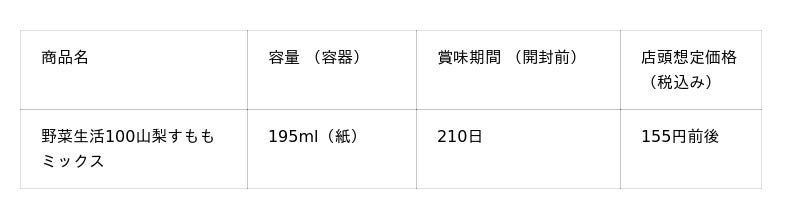 このたび発売する「野菜生活100山梨すももミックス」は、昼夜の寒暖差が大きく、日照時間が長い山梨の土地で育った、甘みと酸味のバランスが調和した山梨県産すももの味わいの野菜・果実100%ミックスジュース※1です。砂糖不使用で、1日分※2のビタミンCを摂ることができます。朝食のおともや、リフレッシュしたいときにおすすめです。